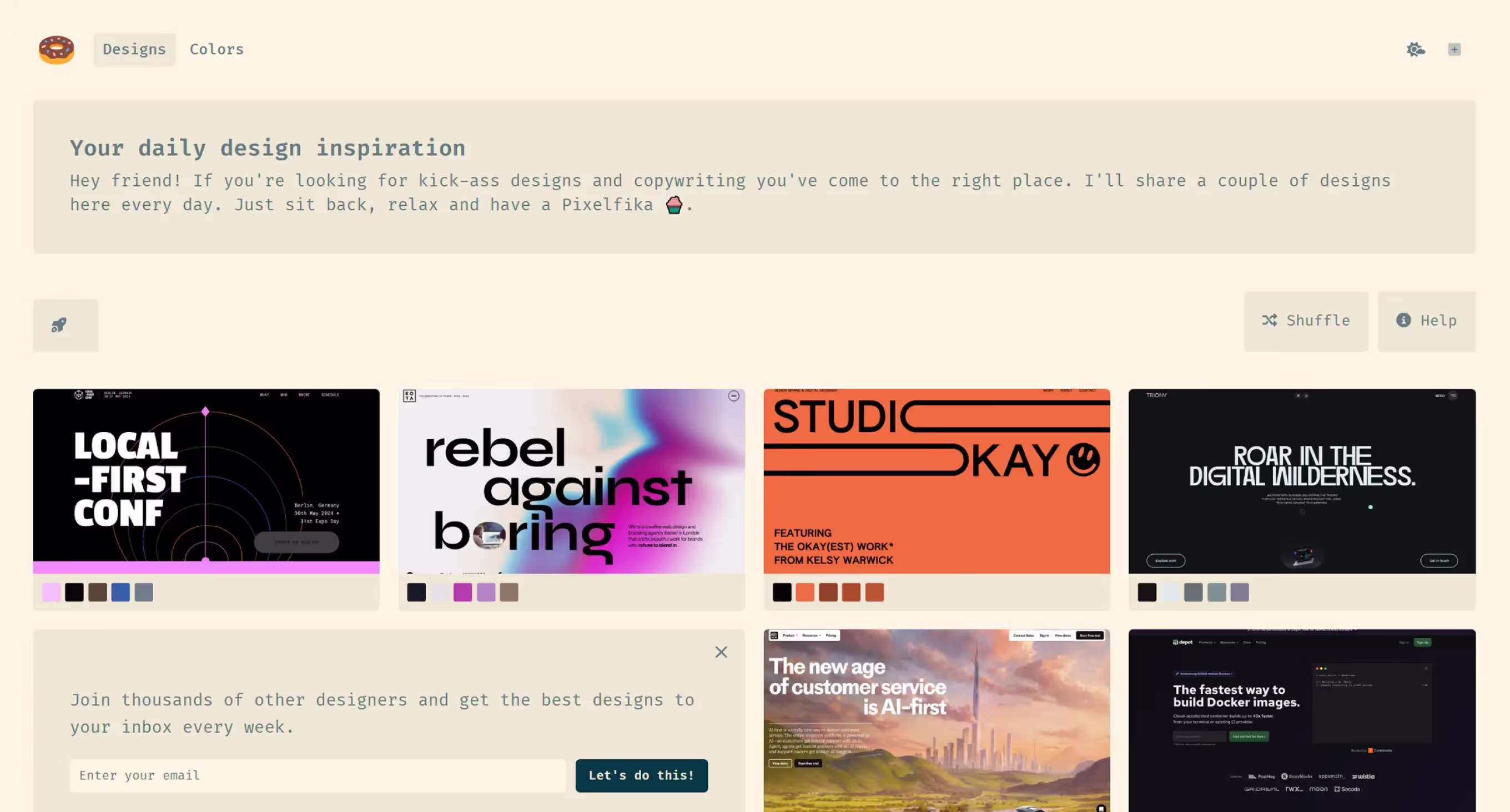 Pixels by Klart — бесплатная галерея настоящих сайтов с интересными дизайн-решениями, которая пополняется ежедневно с 2016 года. Используйте сайт для вдохновения и поиска оригинальных идей. К каждому проекту добавлена палитра с кодами цветов в шестнадцатеричном формате.