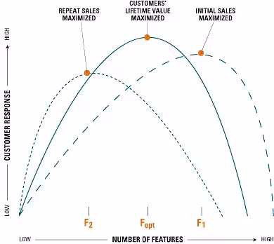 В погоне за максимизацией первых продаж или повторных покупок компании могут включать в свои продукты слишком много или слишком мало функций. Используя модель, предложенную Harvard Business Review, компании могут найти для себя золотую середину в зависимости от желаемого результата.