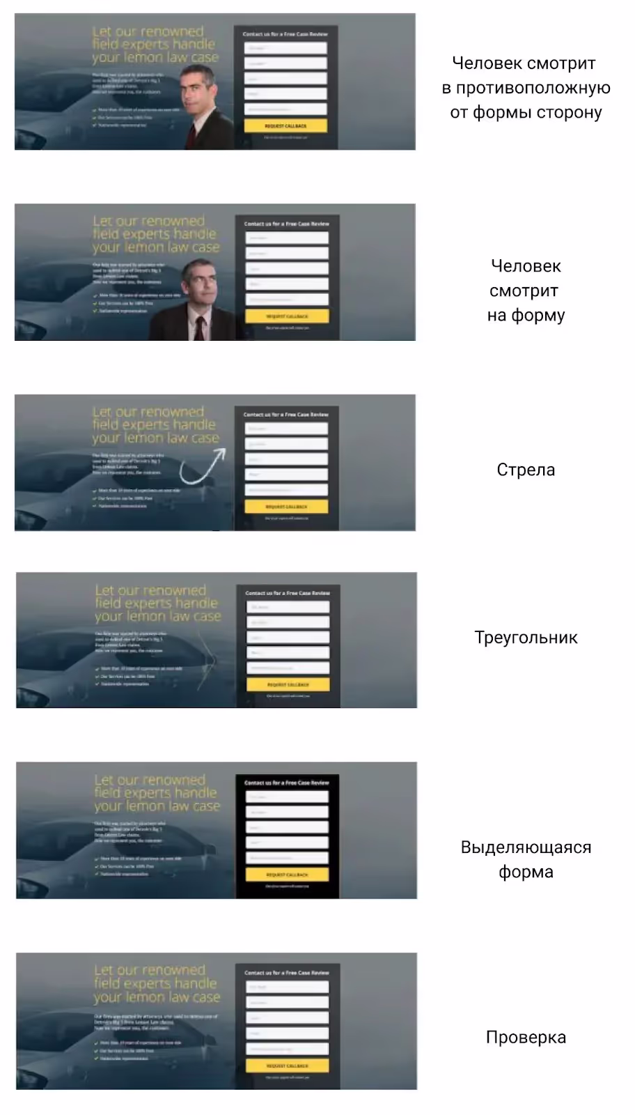 И хотя нет единого правильного ответа по поводу изображения людей в форме связи и областях призыва к действию, мы можем сказать вам, что по крайней мере убедитесь, что человек, которого вы используете, смотрит в сторону формы.