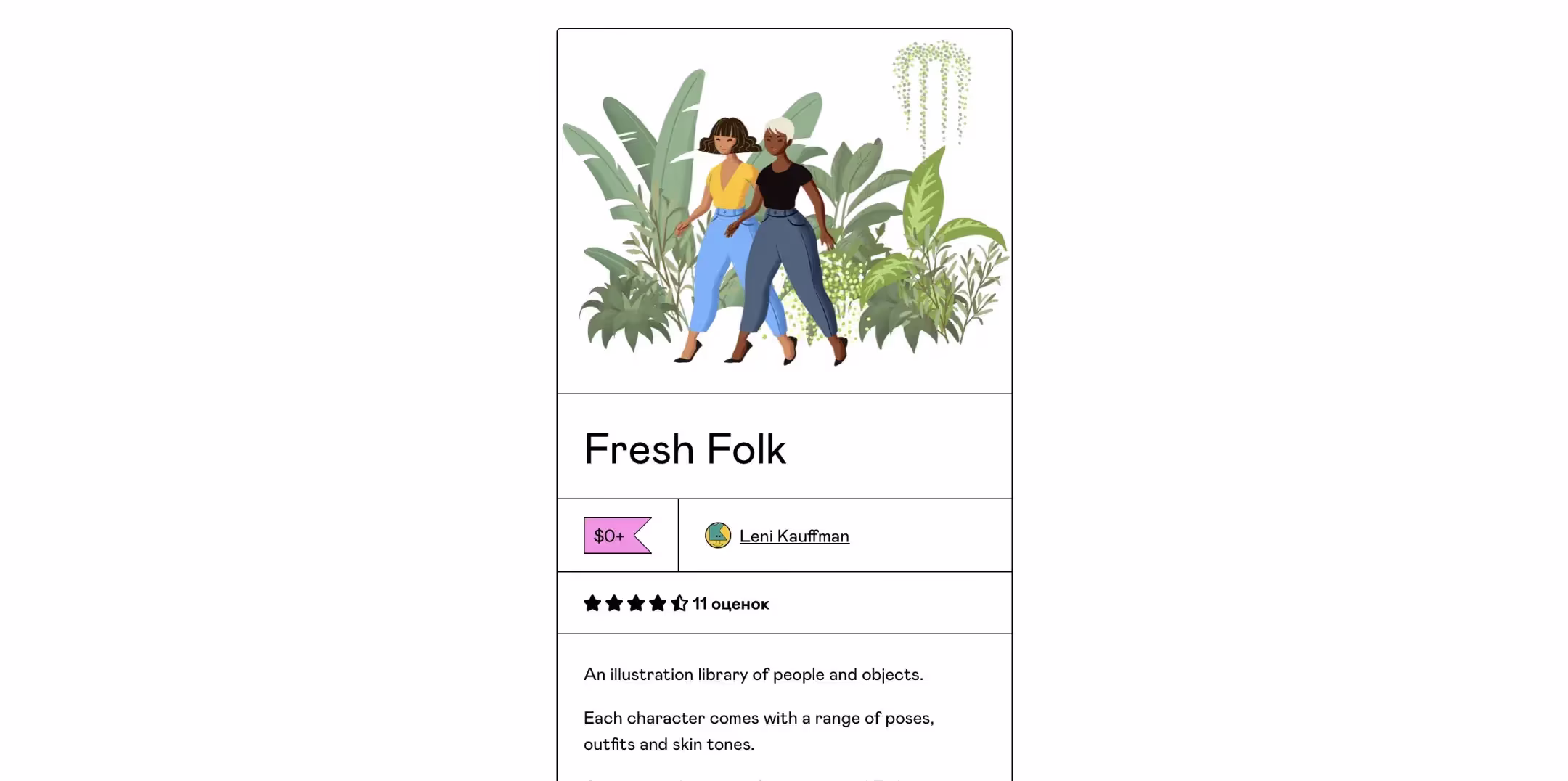 Библиотека (43 объекта) иллюстраций людей и предметов. Загрузите пакет иллюстраций для возможности автономного использования и создавайте любые ситуативные изображения. Настройка модели человека включает выбор не только одежды и позиции, но и типа волос, цвета кожи, сюда же добавьте инклюзивность в целом. Лицензия CC 4.0, то есть вы можете использовать иллюстрации бесплатно, прикрепив ссылку на источник.