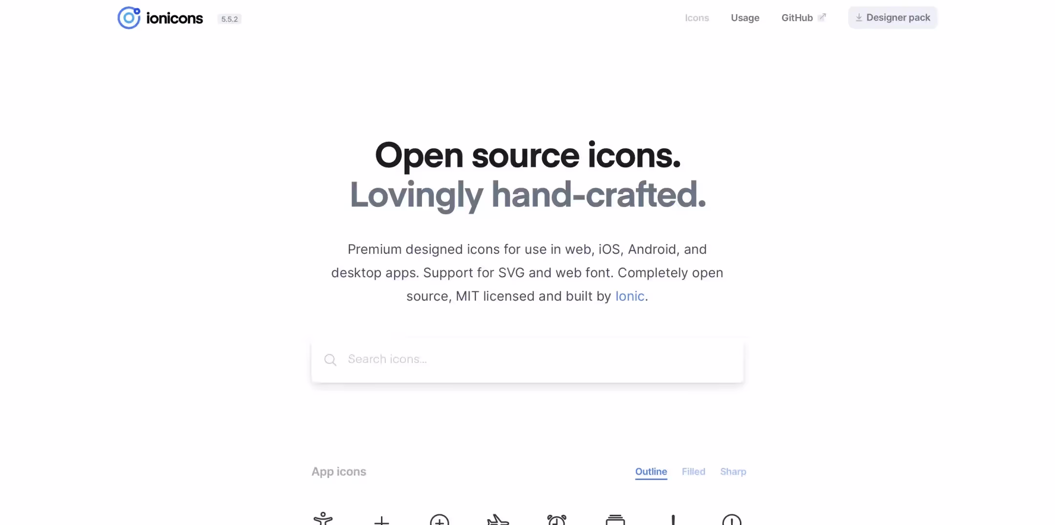Ionicons — это 400+ дизайнерских черно-белых иконок в трех разных стилях: контурные, заливные и заостренные. Коллекция предназначена для использования в вебе, андроид и iOS-приложениях, десктопных программах. Лицензия открытого программного обеспечения MIT, можно свободно скачивать и распространять изображения. Скачивание в формате SVG.