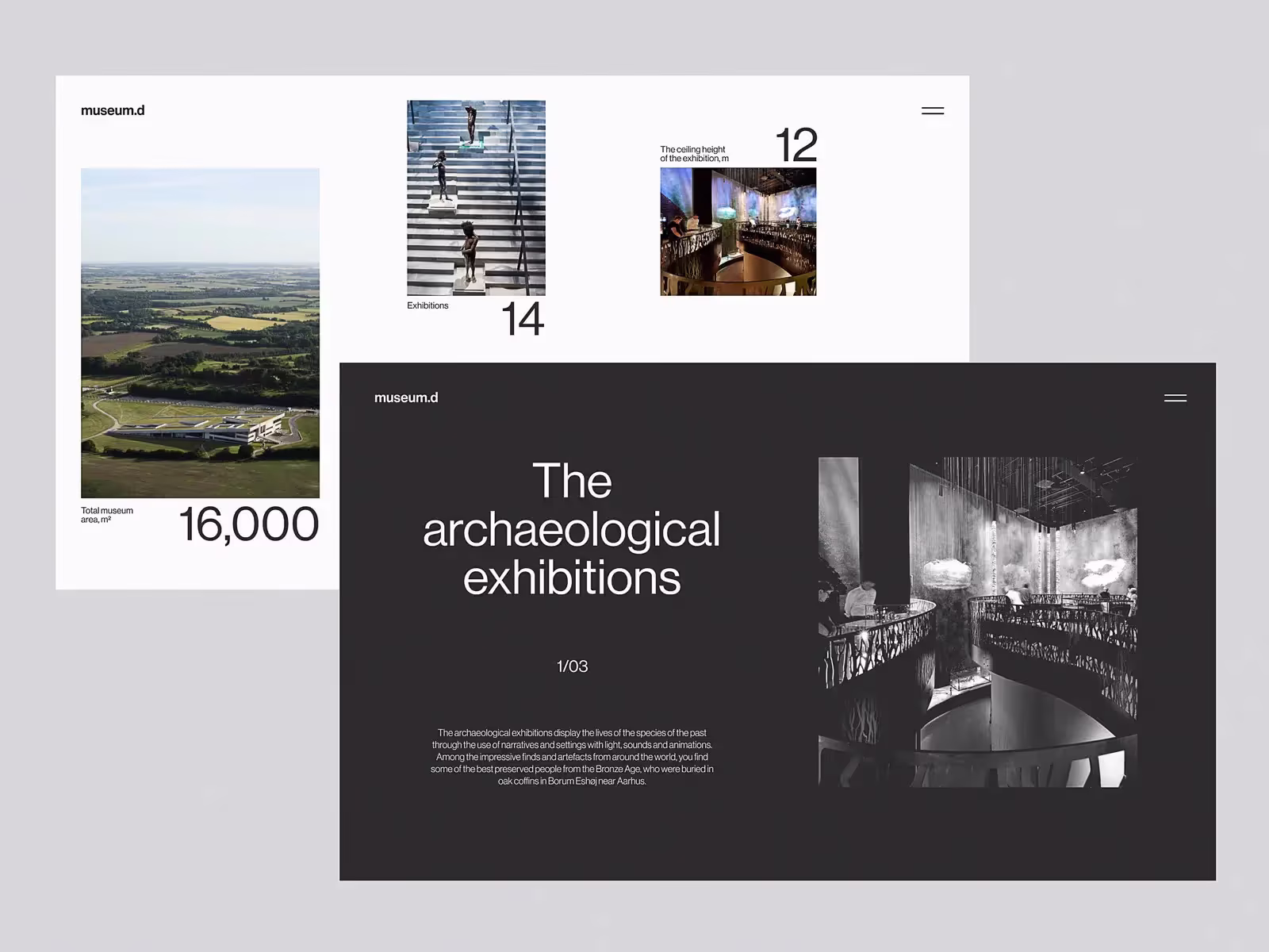 Концепция дизайна сайта, вдохновленная музеем Moesgaard: на главной странице размещена атмосферная фоновая фотография во весь экран