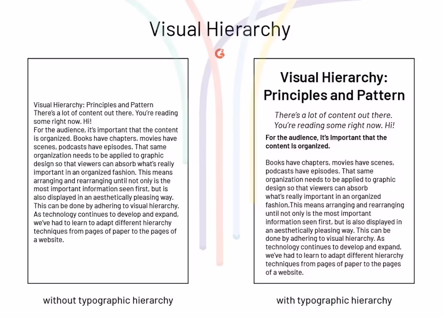Ключевые составляющие типографской иерархии: разные размеры и начертания шрифта, а также грамотная расстановка отступов. Это изображение с сайта G2 наглядно демонстрирует данный принцип: