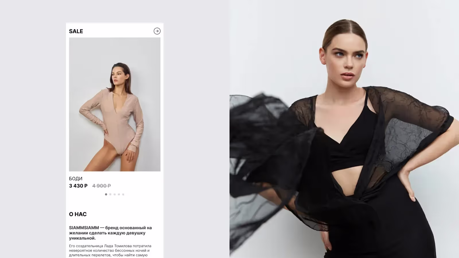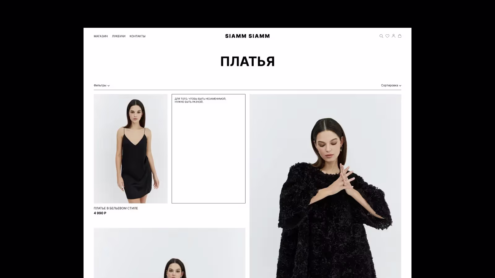 Больше всего мне понравилось работать над главной страницей и лукбуком, так как именно на них можно представить различные интересные визуальные решения.