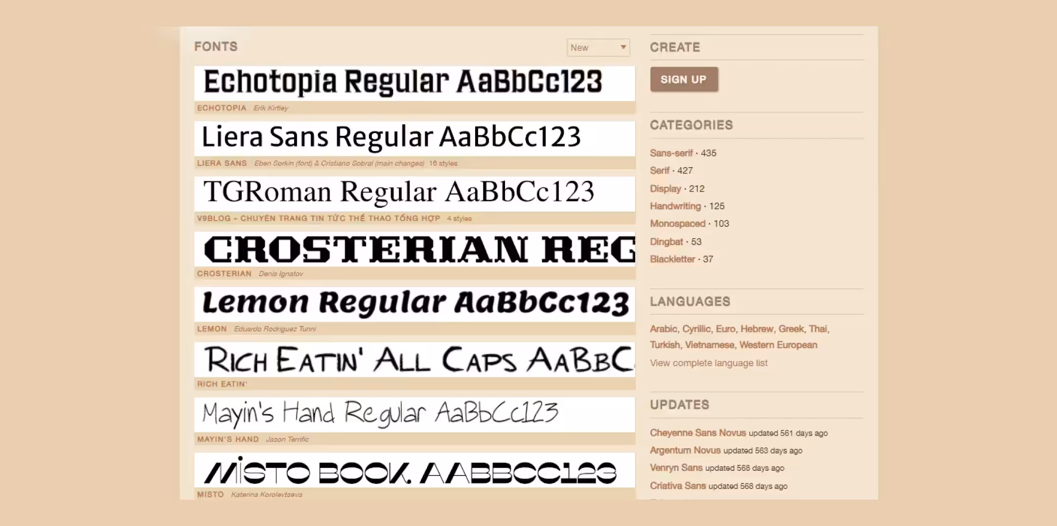 Этот проект был создан для продвижения использования различных шрифтов, а также для поощрения авторов в создании новых. Все шрифты, имеющиеся в данной библиотеке, бесплатны для коммерческого использования. Сервис насчитывает более 6000 шрифтов, также можно выбрать кириллические шрифты.