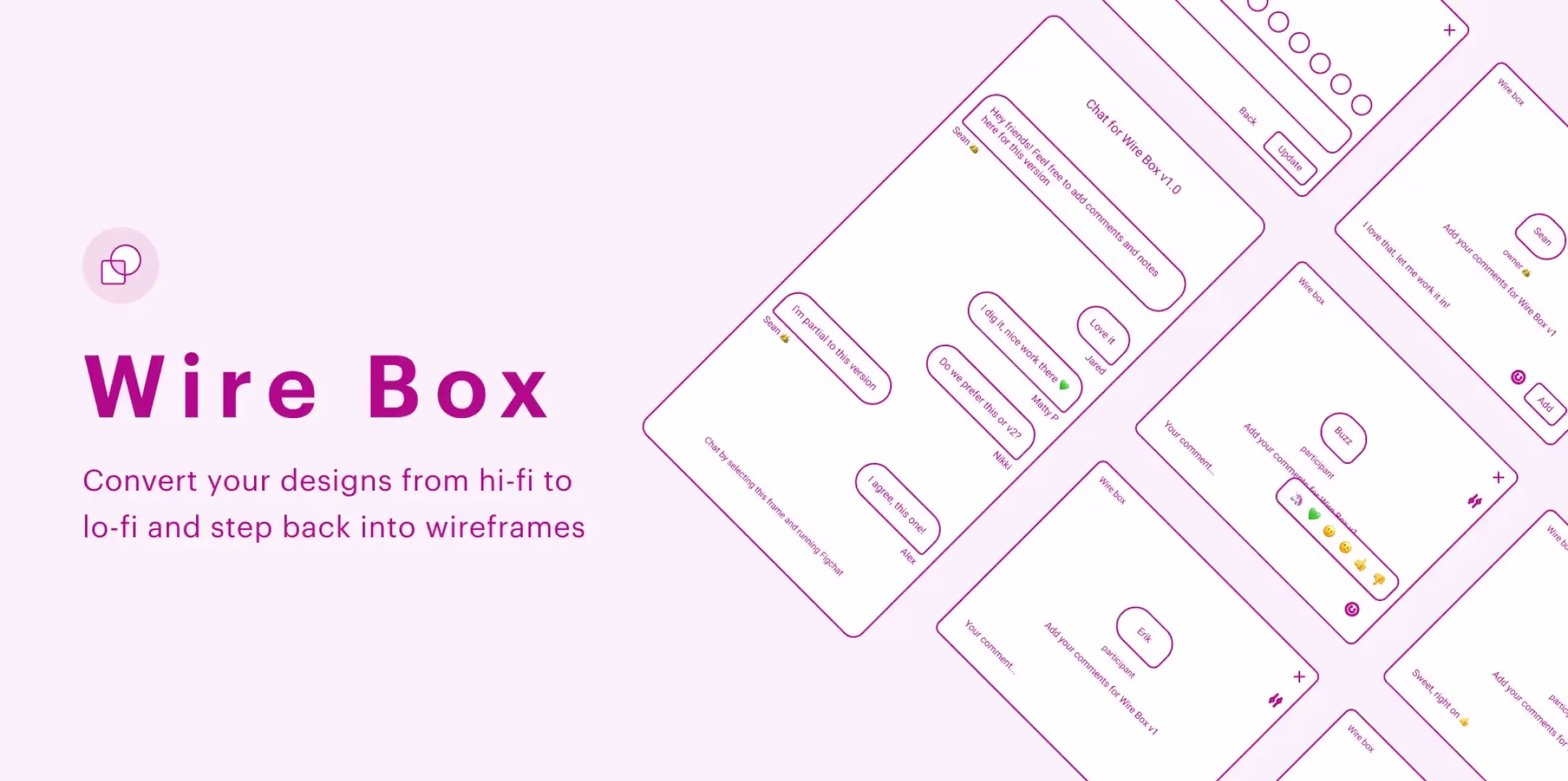 Данный плагин создан для быстрой конвертации макета с высокой точностью обратно в вайфрейм. Возвращение к прототипу поможет сосредоточиться на общей архитектуре UX и произвести необходимые изменения, не отвлекаясь на UI. Просто кликните мышкой и получите прототип своего сайта в ярко-розовом веселом цвете. Некоторые пользователи называет его «противно-розовым».