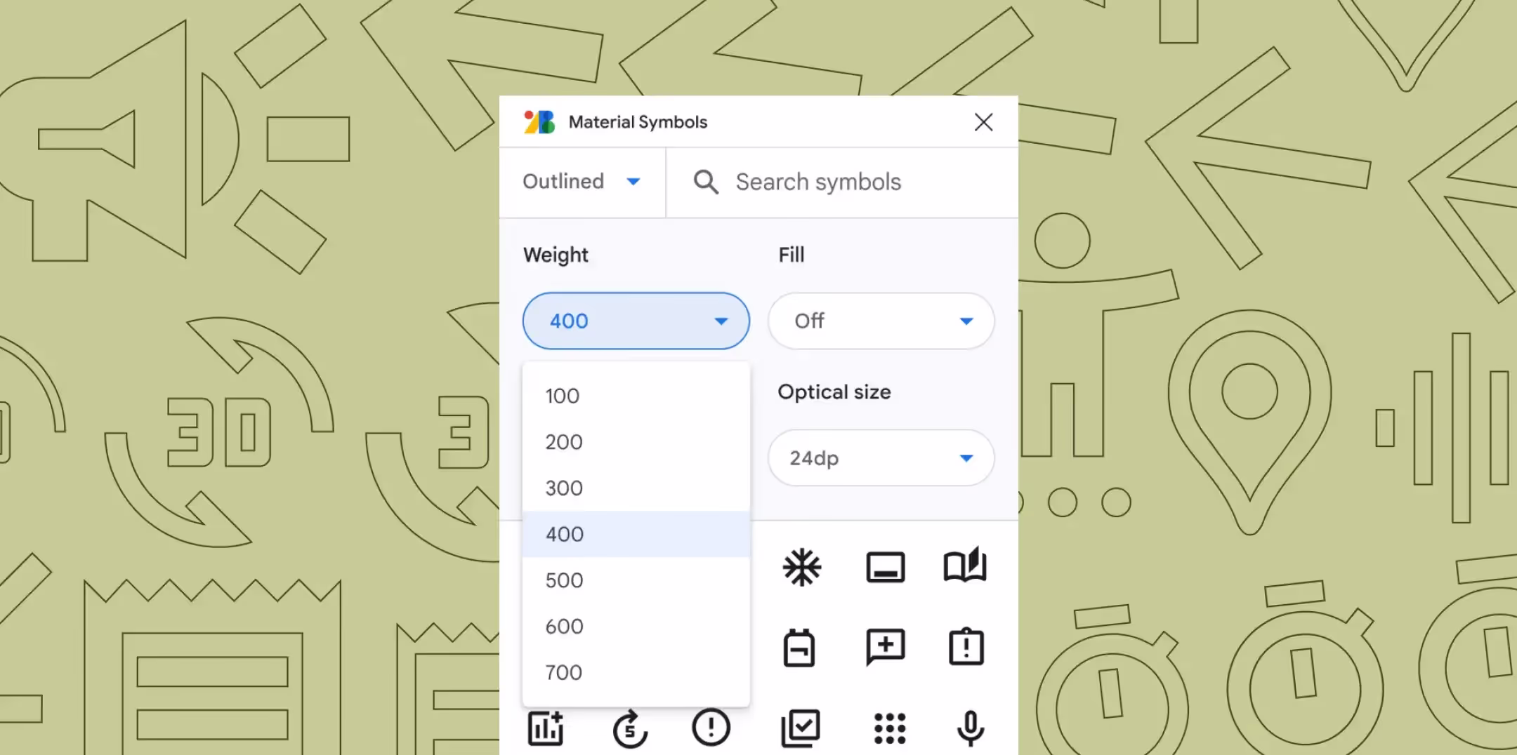 Material Symbols — бесплатная библиотека от Google, которая содержит боле 2500 иконок. Коллекция состоит из кнопок и значков, разделенных по категориям для удобного поиска. Каждый символ можно настроить по 4 признакам: вес (толщина), заливка, качество и размер пикселей. В первую очередь эти символы предназначались для интерфейсов Android и iOS, но они также имеют форматы PNG и SVG, то есть могут использоваться и в других целях.
