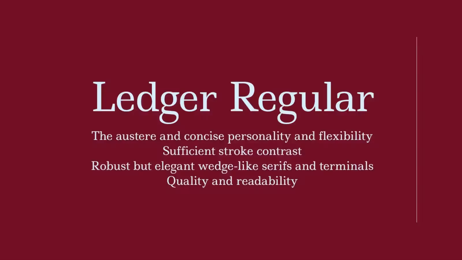 В 2014 году дизайнеры студии TypeTogether разработали новый книжный шрифт для обновления приложения Google Play Books. Требовался шрифт в визуально узнаваемом стиле, который бы обеспечил отличное качество чтения на любых экранах и устройствах, которые используют различные технологии визуализации. А сегодня и вы можете использовать этот шрифт для больших массивов текста, бесплатно для личного и коммерческого использования.