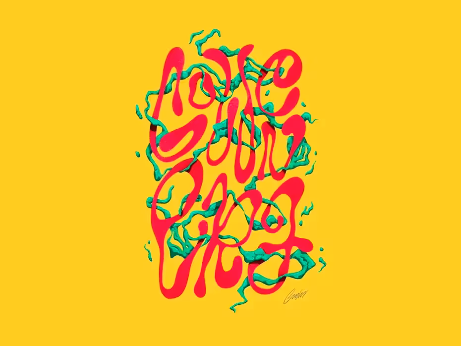В следующем году мы будем видеть больше типографики с экспериментальными композициями. Стиль таких проектов может варьироваться в зависимости от того, какие правила захотел нарушить дизайнер и почему: расположенные в случайной последовательности буквы, странные формы, преднамеренное исключение некоторых букв или изменение их контуров.