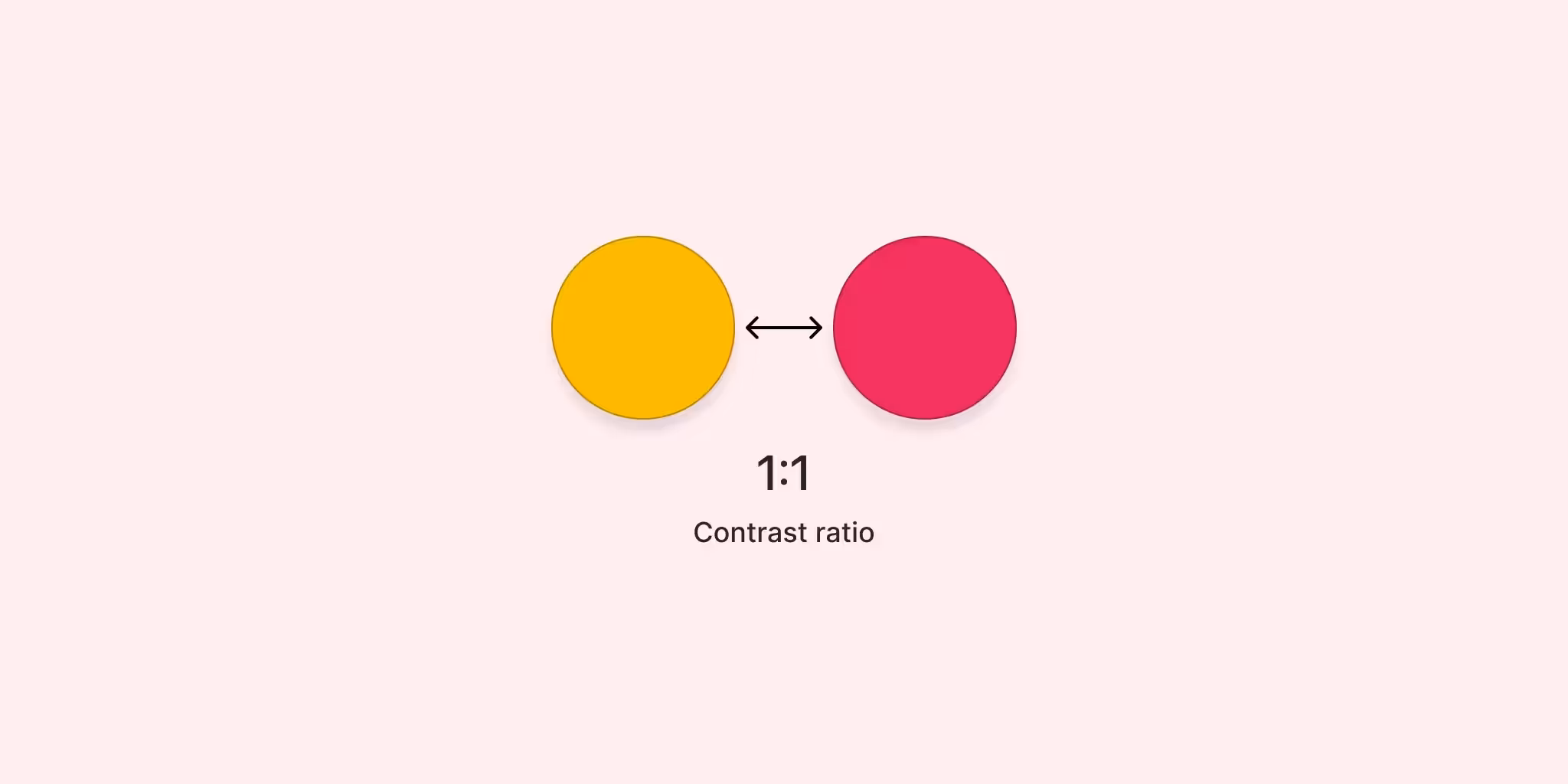Наибольший коэффициент контрастности имеет сочетание черного и белого. Два цвета с одинаковой воспринимаемой яркостью будут иметь соотношение 1:1, как в примере ниже.