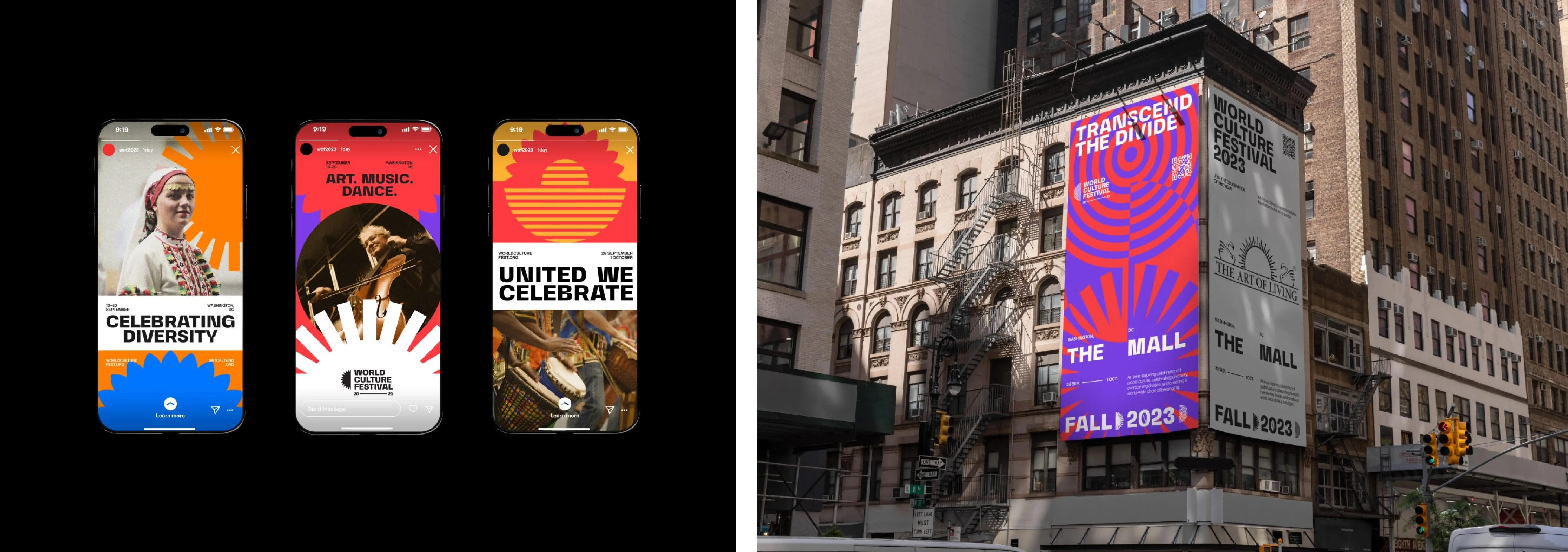 2. Фестиваль мировой культуры 2023 в Вашингтоне: Брендинг этого мероприятия — пример того, как динамическая айдентика может отразить разнообразие и яркие краски мировых культур при помощи адаптивных визуальных элементов, воспевающих единство и инклюзивность.