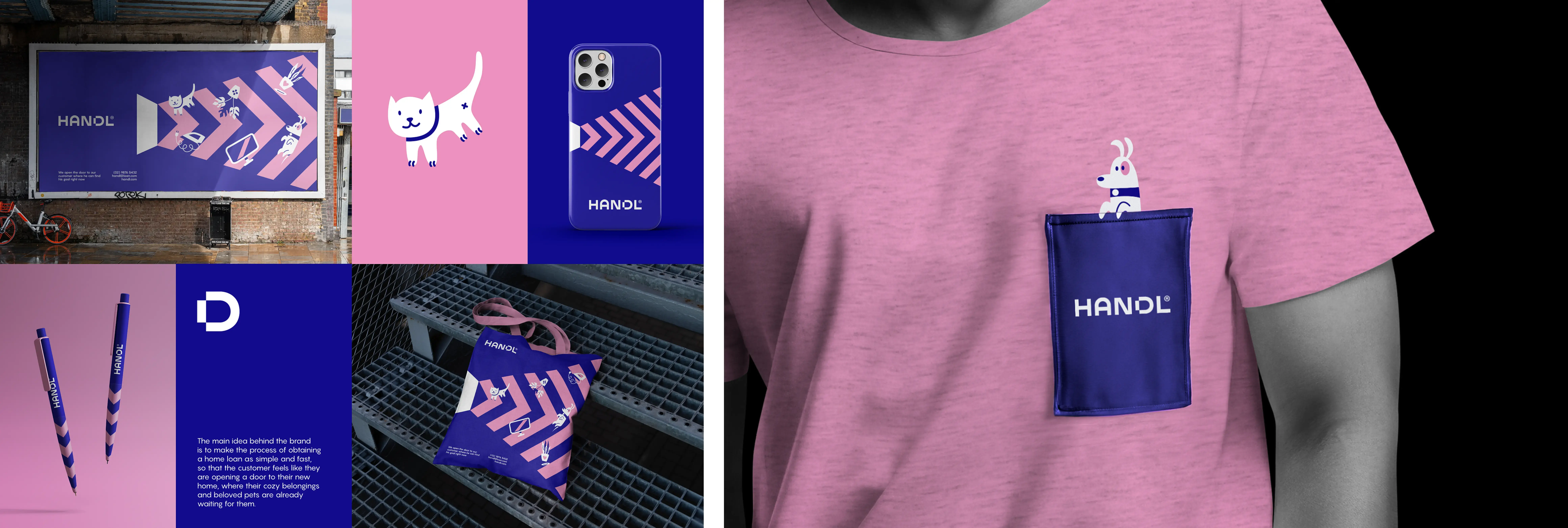 4. Фирменный стиль Handl отличает динамичное использование цвета и формы, отражающее инновационный подход стартапа к решению разных задач. Кастомные иллюстрации очеловечивают бренд, сокращая дистанцию между ним и аудиторией.
