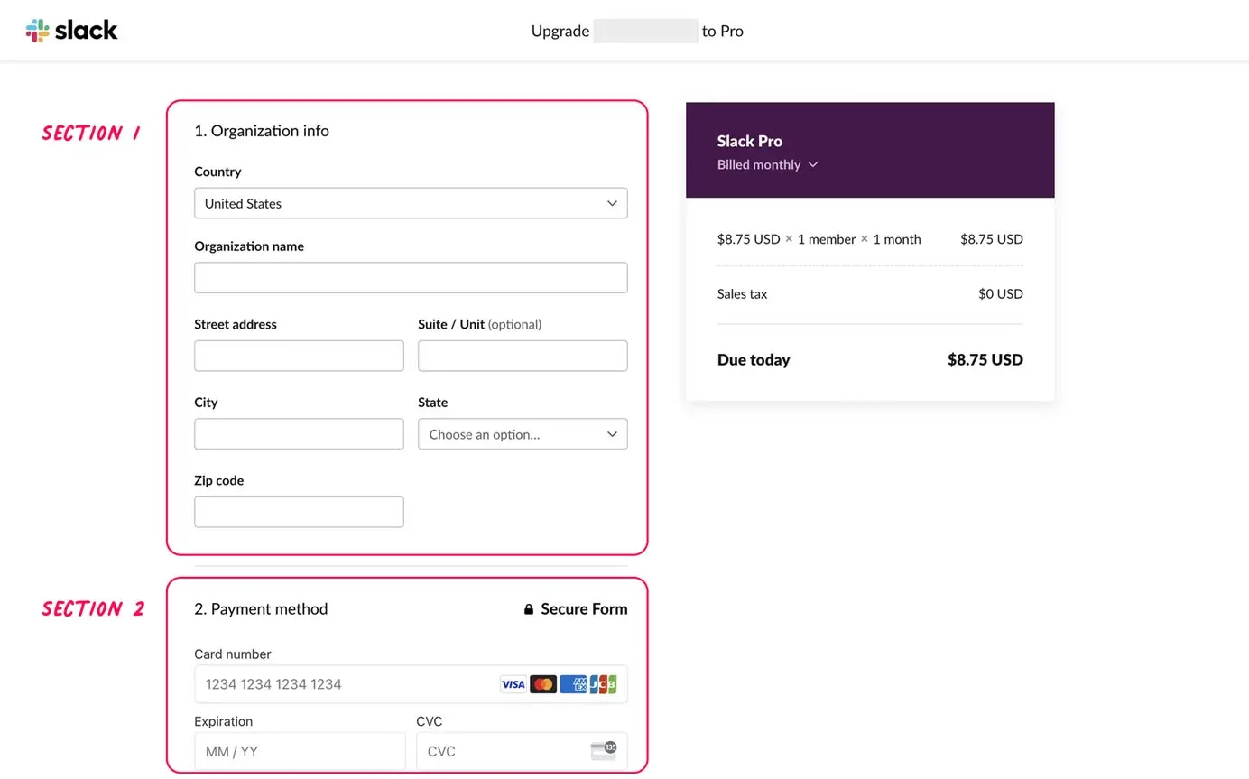 - От простого к сложному: начните с простой, знакомой информации (например, имя, адрес электронной почты), чтобы подтолкнуть пользователя к действию. Будьте последовательны: учитывайте, в каком порядке вопросы обычно располагаются в других формах.
