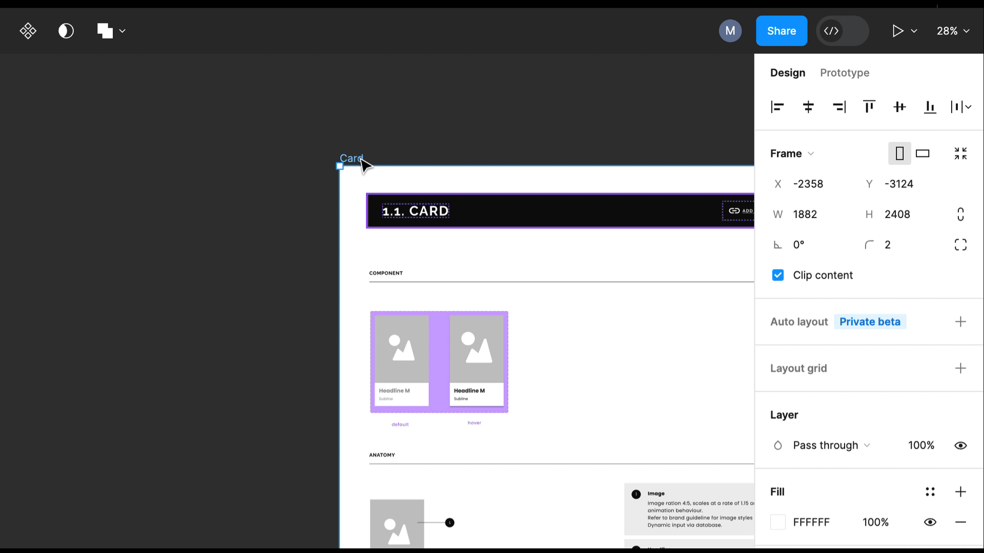 Фреймы можно помещать внутрь секций. Например, вы можете добавить в секцию фрейм с экземпляром компонента и использовать его для демонстрации поведения кнопки: чтобы запустить предварительный просмотр прототипа прямо внутри файла, нажмите Shift + пробел 💥.