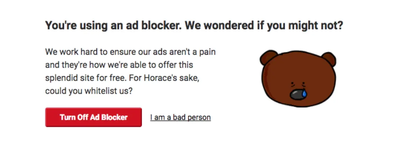 Эта тактика заключается в том, чтобы пристыдить пользователя или вызвать у него чувство вины, если он захочет отказаться от предложения. Формулировки намеренно выбираются таким образом, чтобы подтолкнуть человека к клику по предпочтительной для компании опции, даже если это ему не нужно.