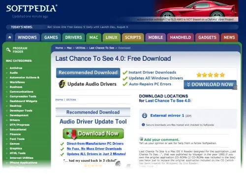 Именно этим был печально известен популярный репозиторий программного обеспечения Softpedia: на одной странице было 6 разных кнопок «Загрузить» (реклама), и лишь после них появлялась реальная рабочая ссылка.