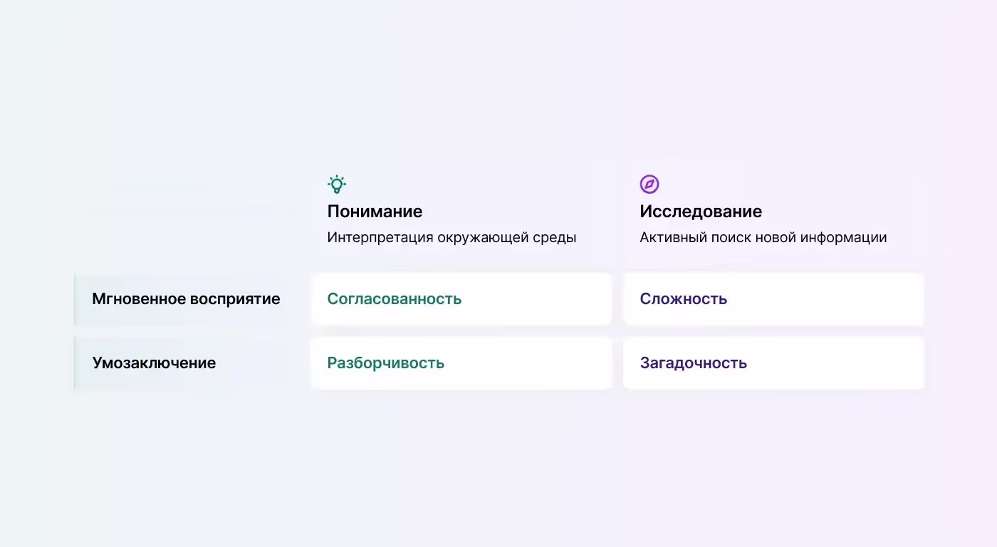 В основе этих предпочтений лежат две когнитивные функции: понимание и исследование.