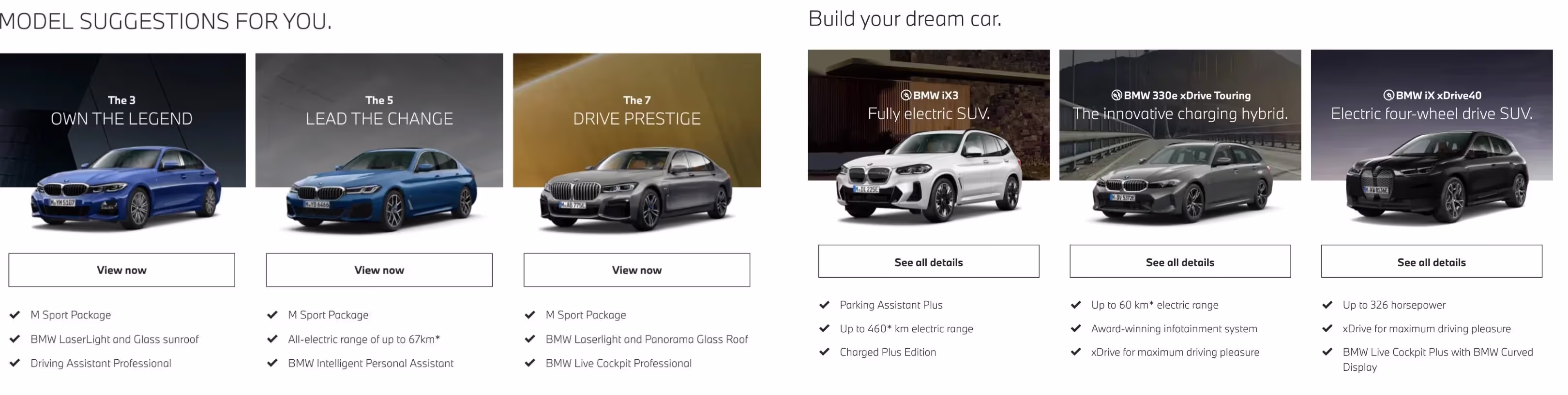 Прокрутив главную страницу вниз, мы видим панель с предложениями о покупке. Малазийский сайт снова делает акцент на статусности. Вы должны купить один из этих автомобилей, чтобы «стать обладателем легенды» или «почувствовать себя элитой». В Швеции вам следует купить BMW, потому что у них есть электрические модели.
