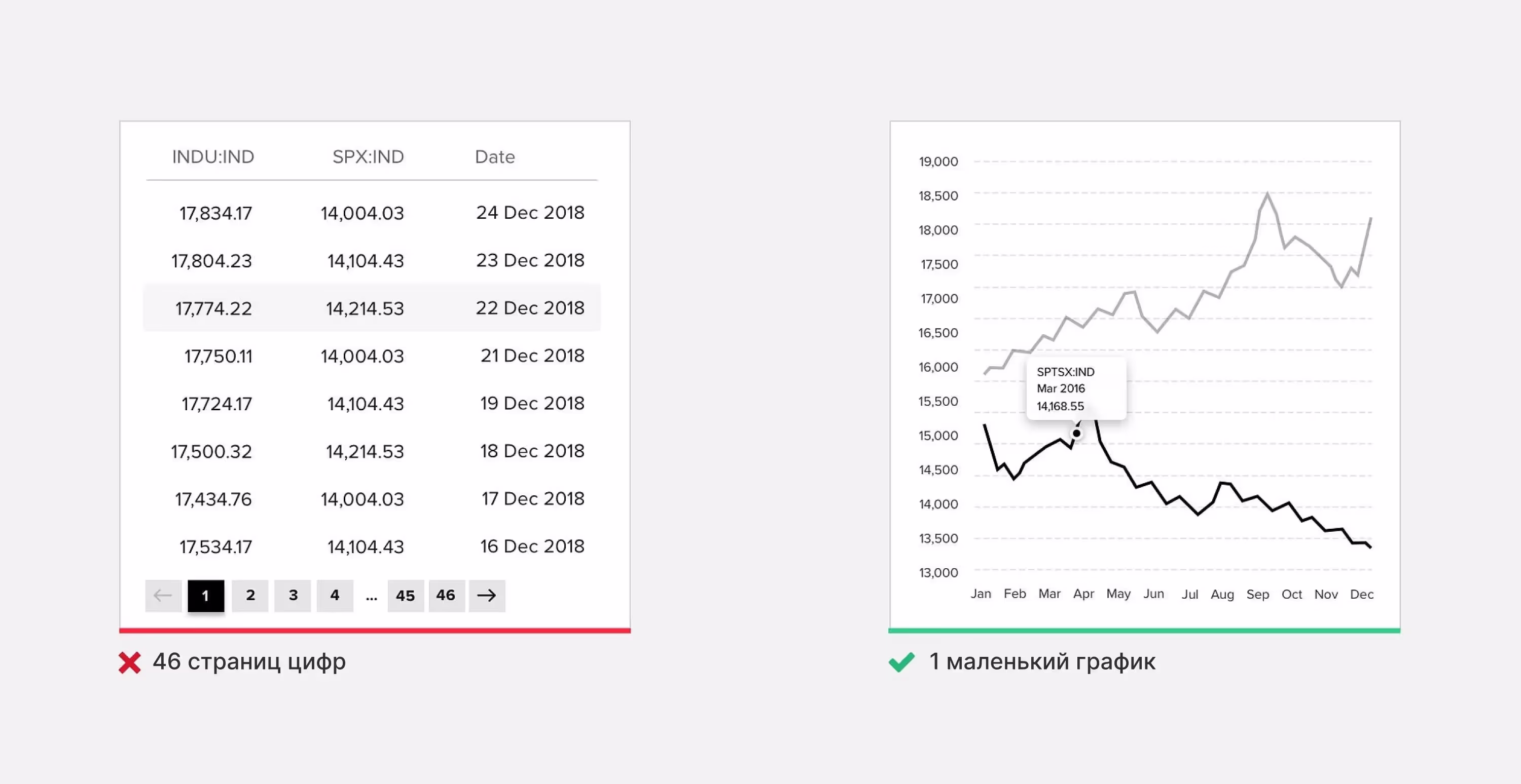 Цифровые продукты зачастую содержат большое количество данных, которые необходимы пользователям для решения их задач. Вместо того чтобы заставлять людей анализировать множество цифр, представьте информацию в наглядном формате. Выделите самое важное, а дополнительные сведения показывайте по запросу.