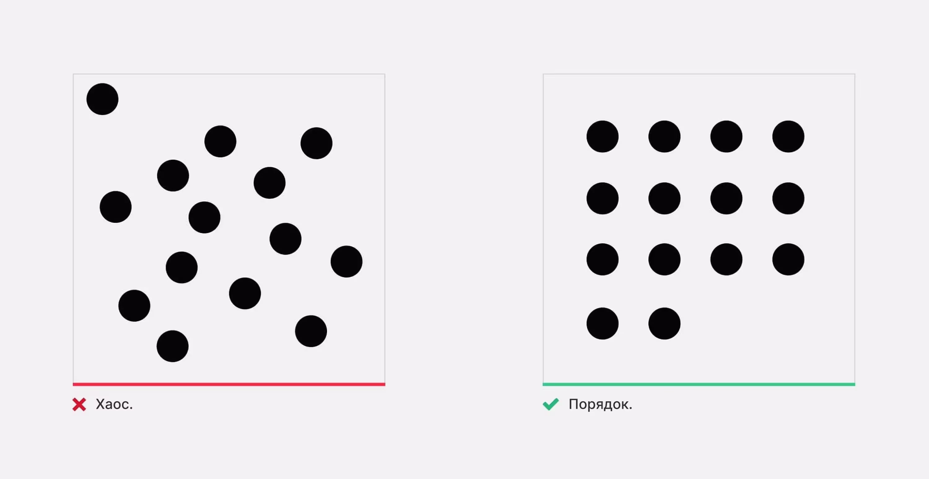 Организация элементов не только улучшает распознавание, но и облегчает запоминание. Давайте сделаем еще одно небольшое упражнение. Всего минуту назад вы считали точки на двух картинках, а теперь вспомните положение каждой точки в двух квадратах. Воспроизвести первую картинку практически невозможно!