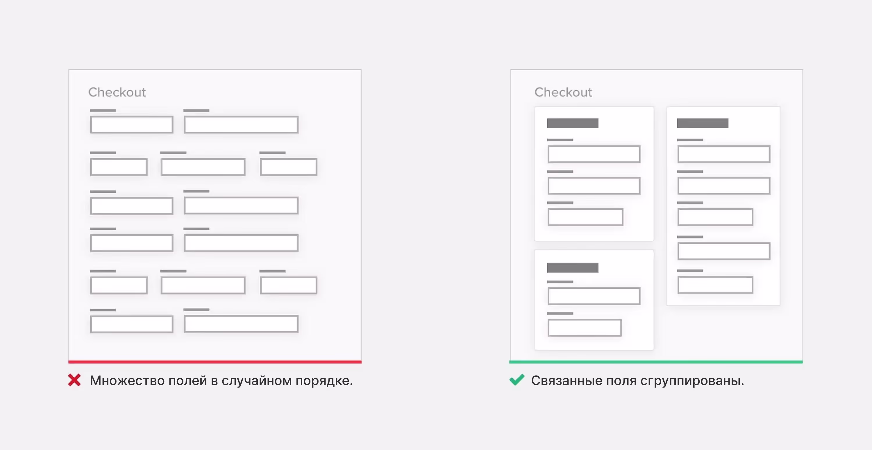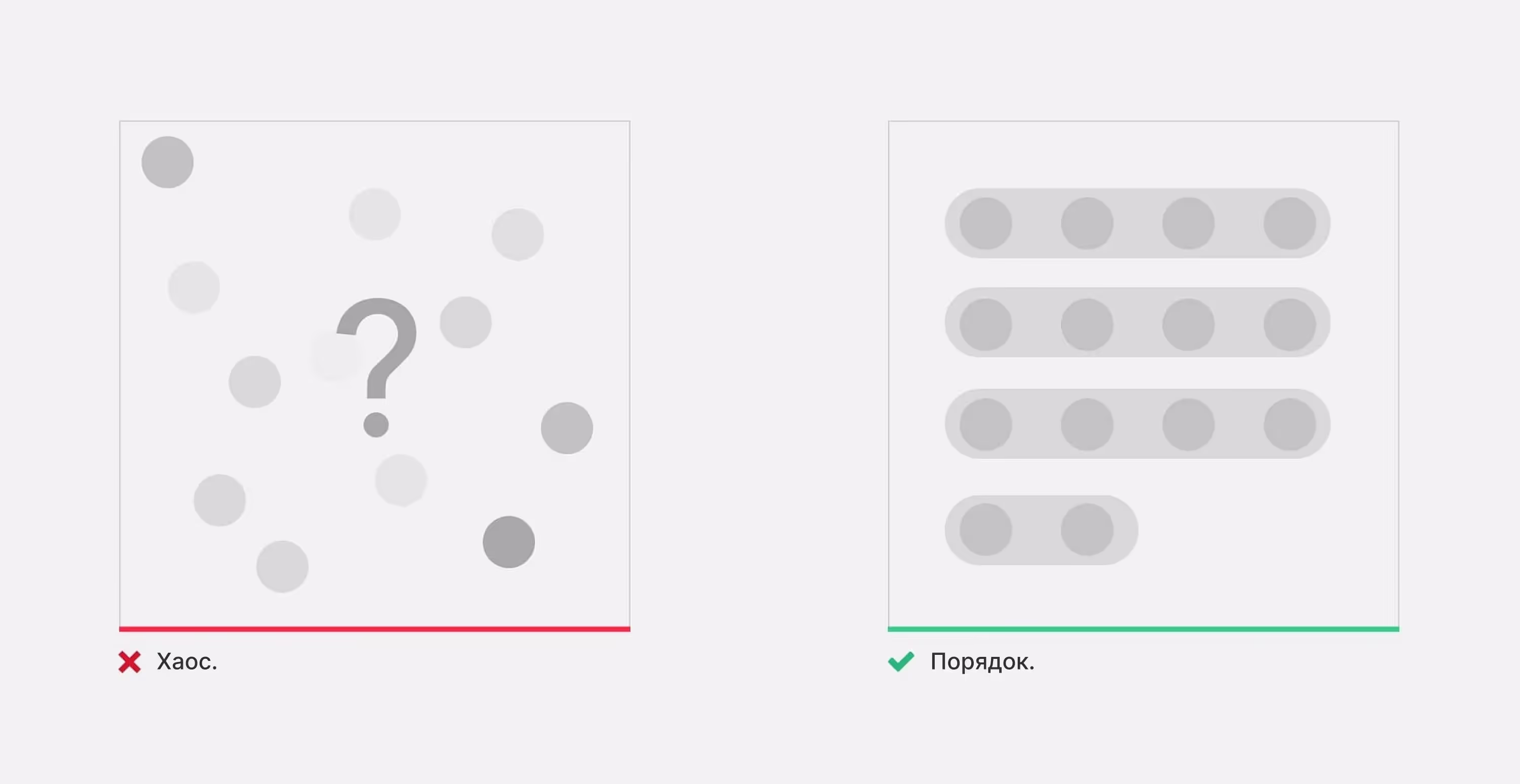 Очевидный способ упростить сложную страницу — группировка. Так пользователям придется иметь дело с несколькими группами, а не с множеством разрозненных элементов. Добавление обводки или заливки вокруг группы (создание общих областей) — эффективный способ отделить одни элементы от других. Используйте и другие принципы гештальт-психологии, чтобы визуально объединить элементы, например, Близость, Сходство, Непрерывность, Завершенность.