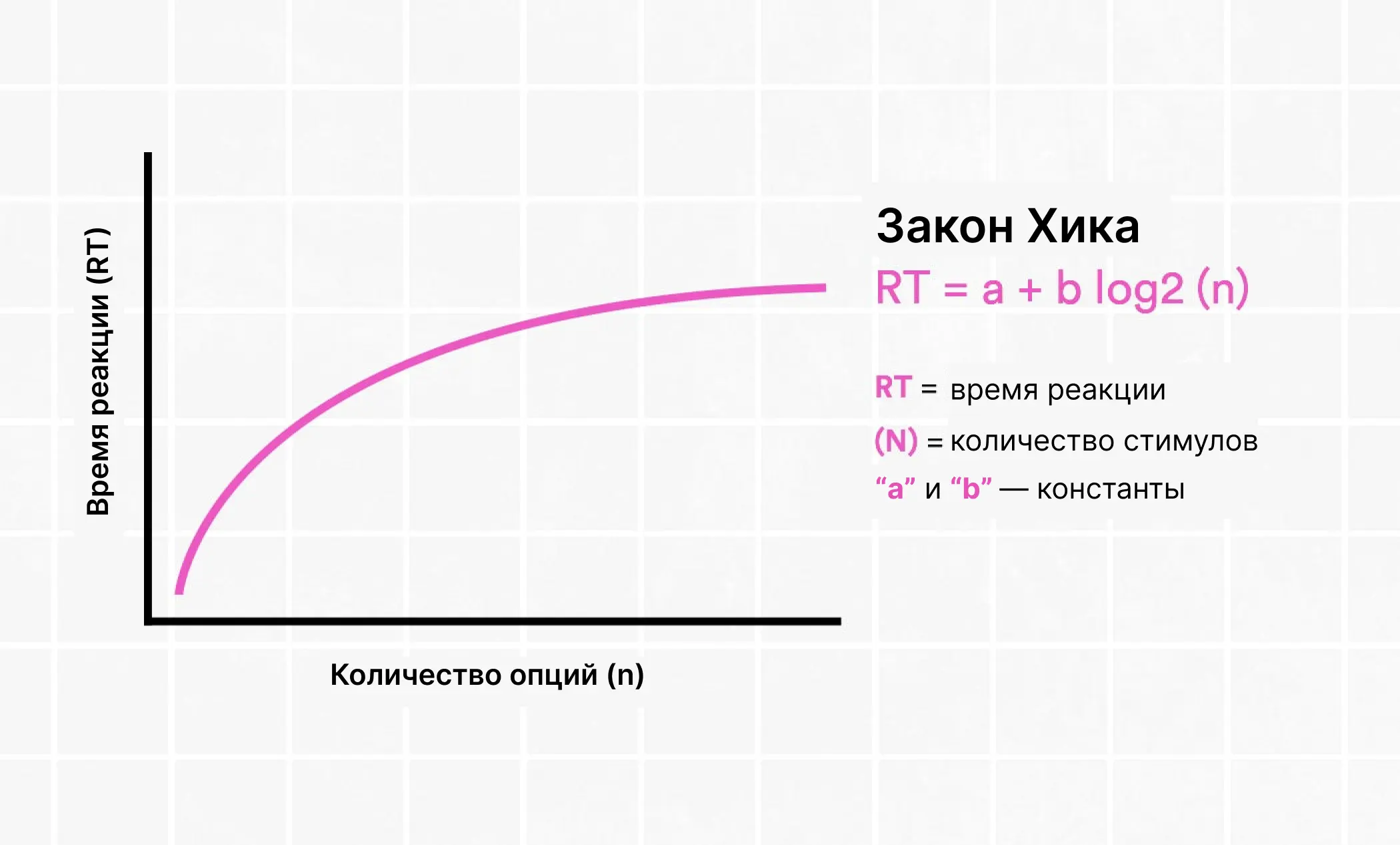 Это яркий пример того, как работает закон Хика-Хаймана в реальной жизни. Когда мы сталкиваемся с широким выбором, нам требуется больше времени, чтобы принять решение.