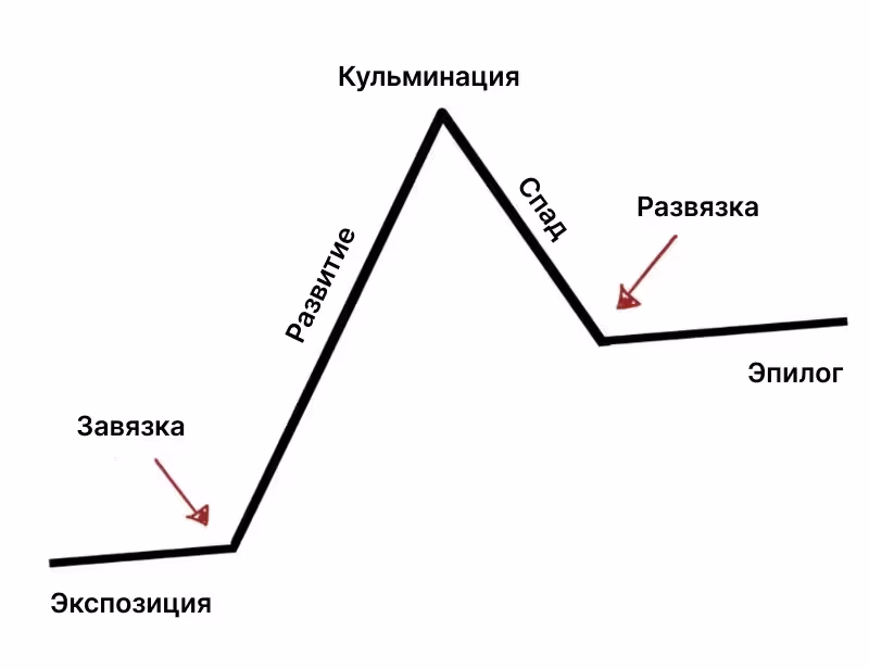 Сторителлинг отвечает на вопросы «как» и «почему», а не только «что». Вспомните интересный фильм. Из каких базовых элементов состояла сюжетная линия? 🎬