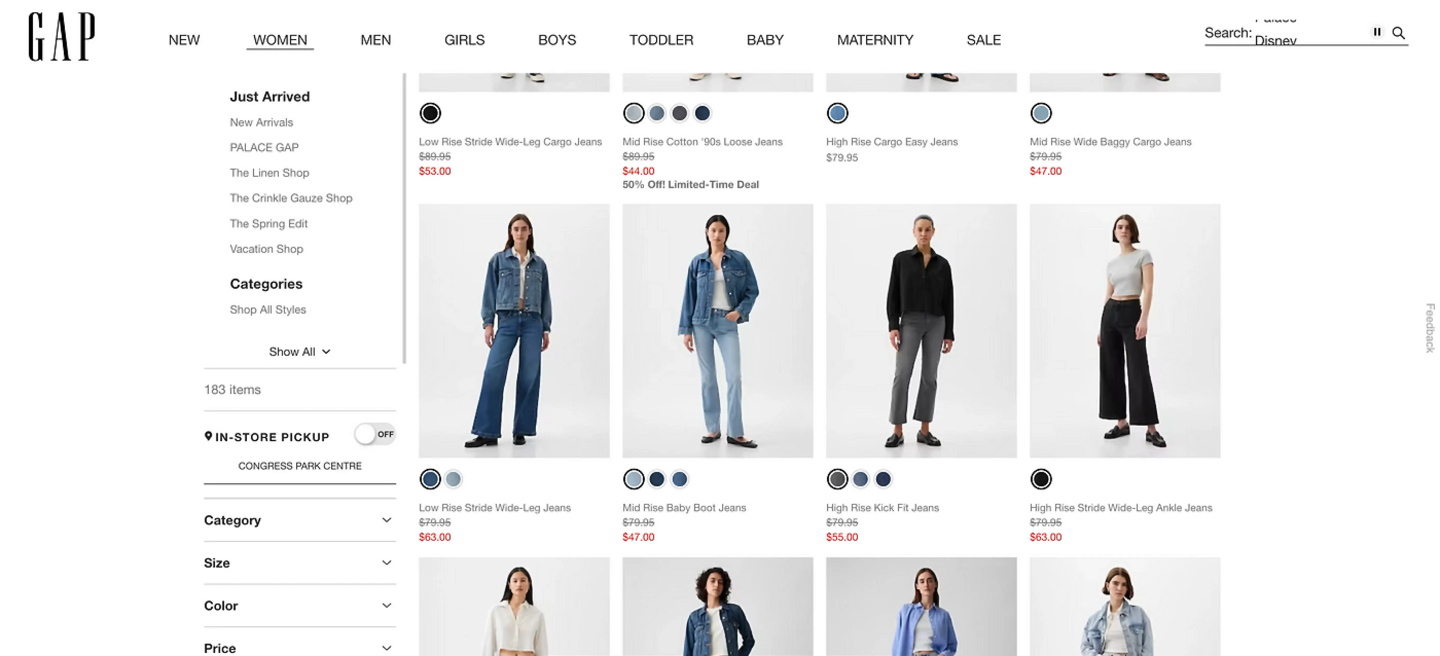 Я не хочу придираться к Gap, но у них огромный ассортимент, и при этом пользователи получают именно такой некомфортный опыт. Список товаров бесконечен — все они сливаются в один невнятный поток, из которого трудно вычленить что-то подходящее.