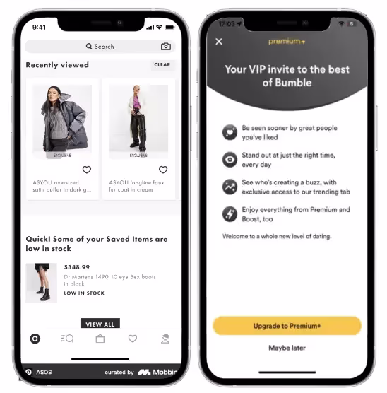 Этот принцип можно применять по-разному. Например, сайты электронной коммерции, такие как ASOS, используют предложения с ограниченным сроком действия и флеш-распродажи, чтобы стимулировать регулярное взаимодействие. А приложение для знакомств Bumble создает ощущение премиальности и эксклюзивности своей подписки, отправляя пользователям «VIP-приглашения».