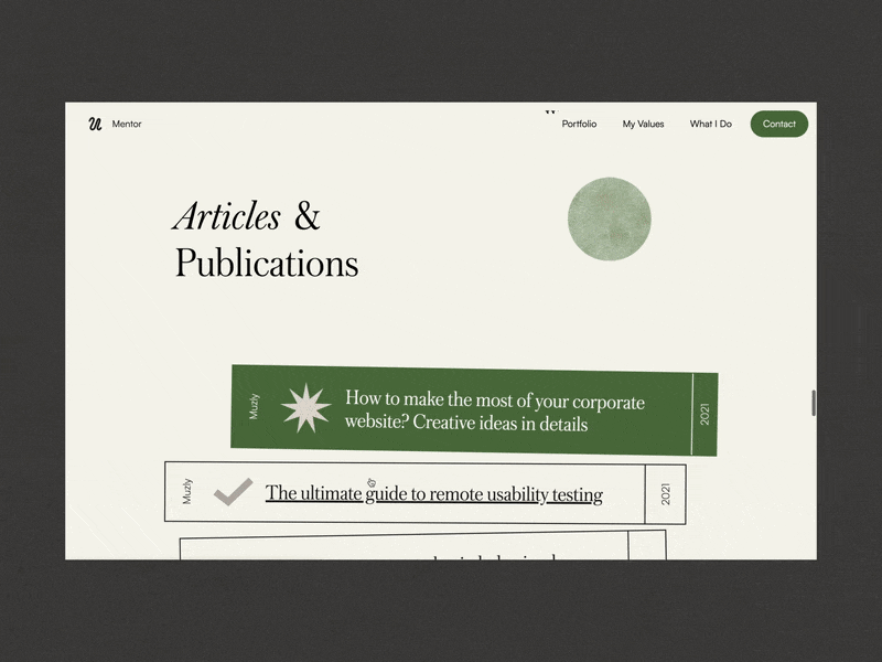 Дизайн с акцентом на текстуры и анимированные взаимодействия не только демонстрирует опыт и навыки Ольги, но и знакомит аудиторию с ее творческим путешествием и философией. Это отличный пример одновременно глубоко личного и в то же время профессионального сторителлинга.