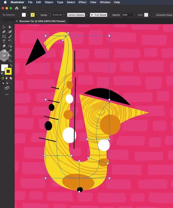 «Очень часто при редактировании иллюстрации мне приходится перерисовывать линии в Adobe Illustrator. Сохранение характеристик нарисованных от руки линий может быть проблемой. Если линия длинная и требует большого разнообразия, вместо использования профиля переменной ширины для кисти я использую инструмент «ширина», доступ к которому осуществляется сочетанием клавиш Shift + W.