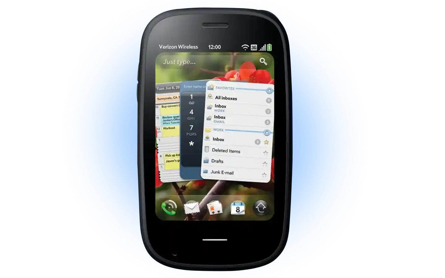 • 2009 — Palm — webOS, карточки — Представление многозадачности в виде колоды карточек, которые можно перетасовывать и отбрасывать, что напоминает процесс сортировки физических документов.