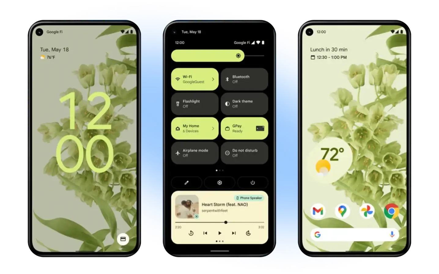 • 2021 — Google — Material You — Динамическая генерация цвета темы на основе установленных пользователем обоев, чтобы визуально адаптировать устройство к персональному контексту и усилить ощущение принадлежности.