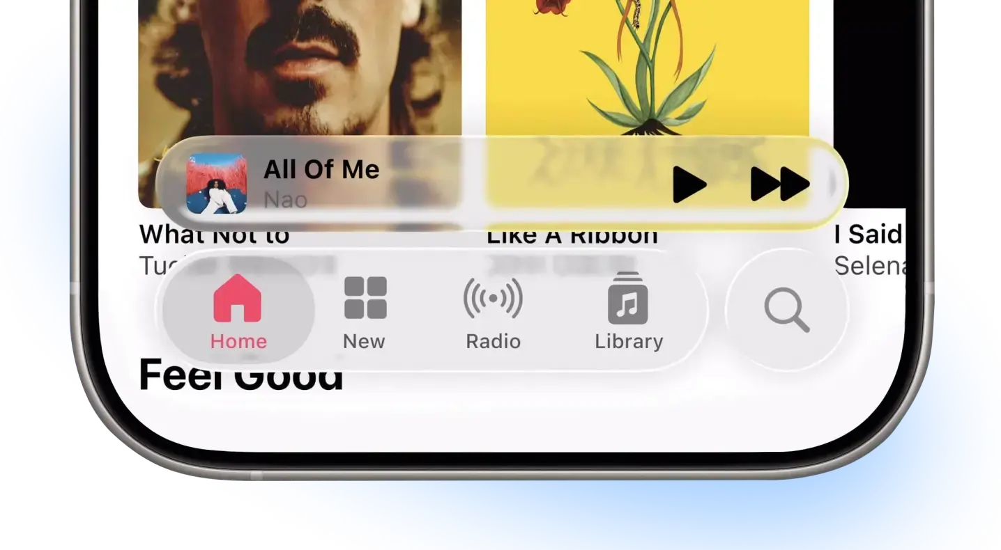 Путаница усугубляется элементами навигации, такими как панели вкладок, которые теперь выглядят как стеклянные блобы в нижней части экрана. Физика материала здесь становится совершенно непоследовательной. Находятся ли эти вкладки под стеклом, увеличивающим и искажающим их? Состоят ли они сами из стекла? Когда вы нажимаете на них, вы перемещаете стекло, чтобы сфокусироваться на другом элементе, или каким-то образом проникаете через стекло, чтобы коснуться вкладки напрямую?