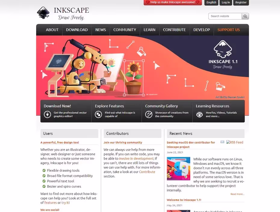 - Inkscape — это графический редактор с открытым исходным кодом, поэтому он постоянно развивается и совершенствуется, и вы можете адаптировать его под свои нужды.