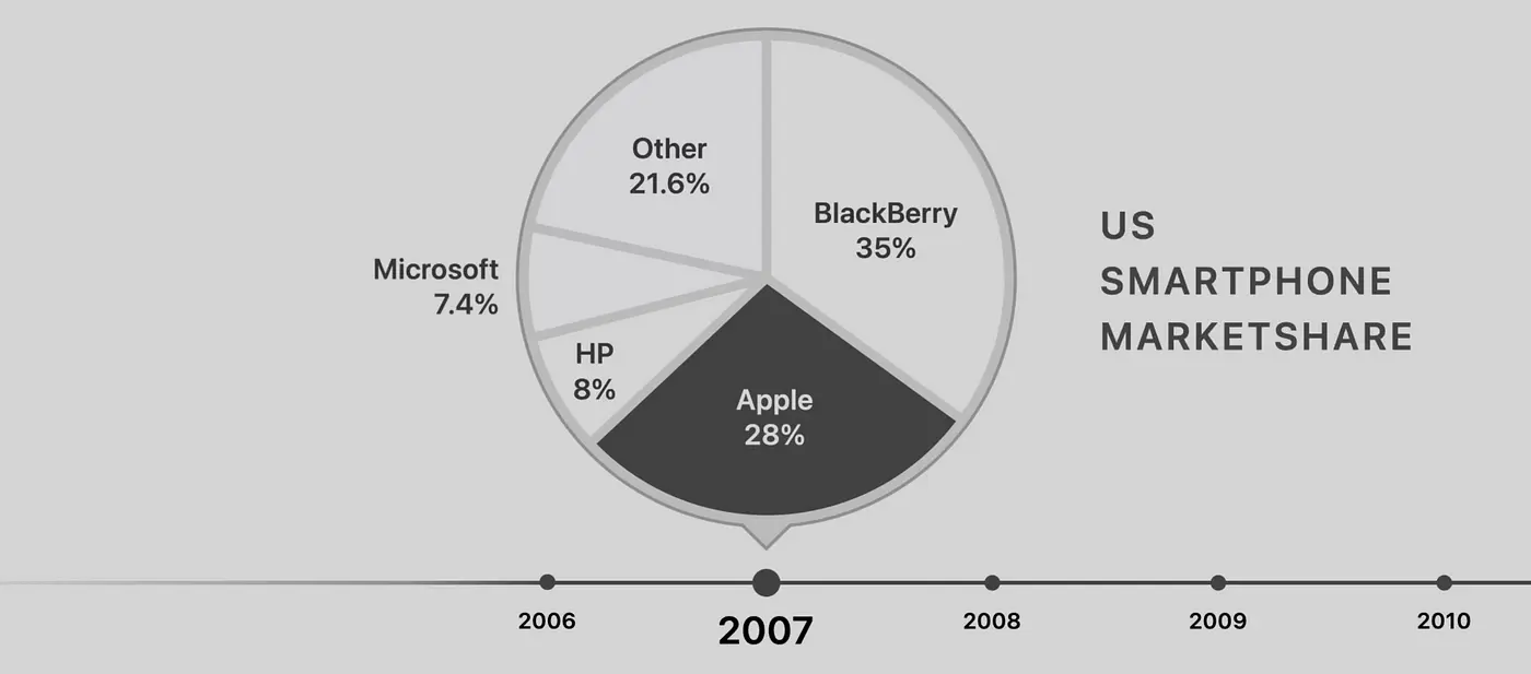 В начале 2000-х Microsoft была королем мира ПК. А Apple? Все еще аутсайдер, с классным дизайном, но небольшой долей рынка.
