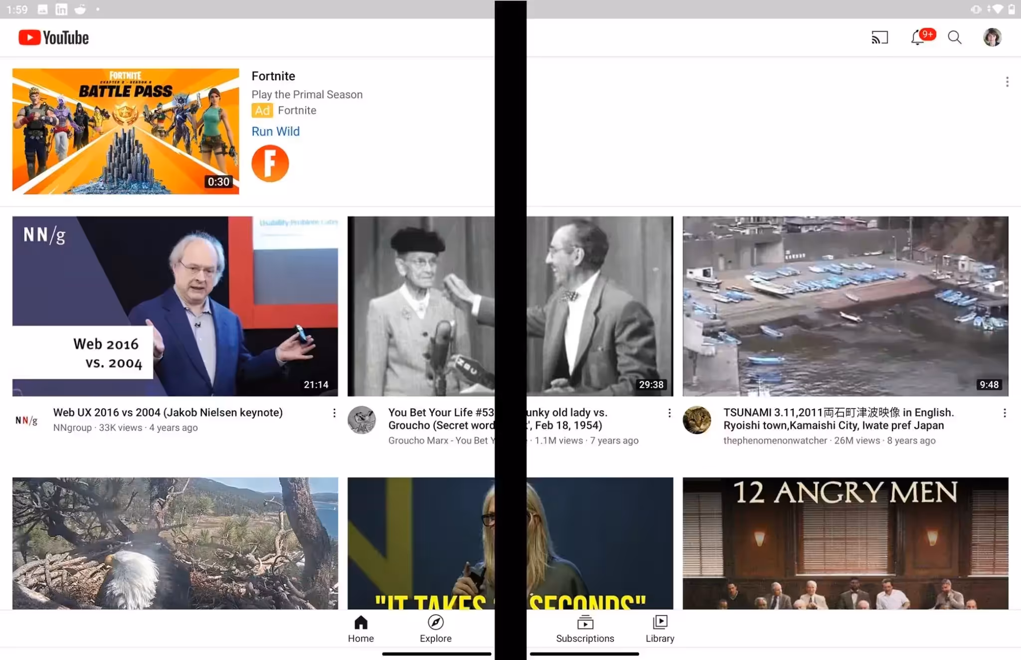 - адаптивные приложения, такие как The New York Times или YouTube, обычно отображают версию для планшета;