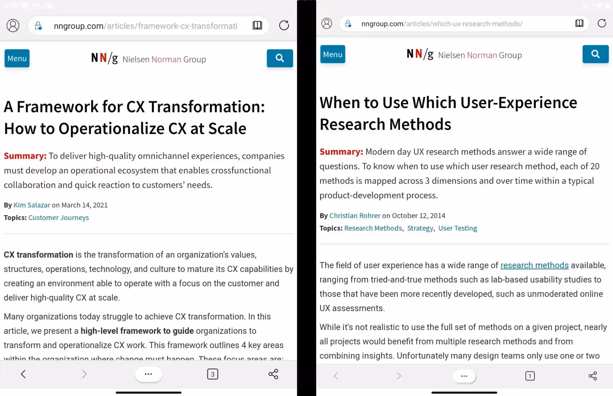 Например, левый экран может быть главной страницей, такой как список статей, а правый экран может быть подробным представлением одной из статей. Или левый экран может быть представлением папки «Входящие», а правый может отображать выбранное сообщение.
