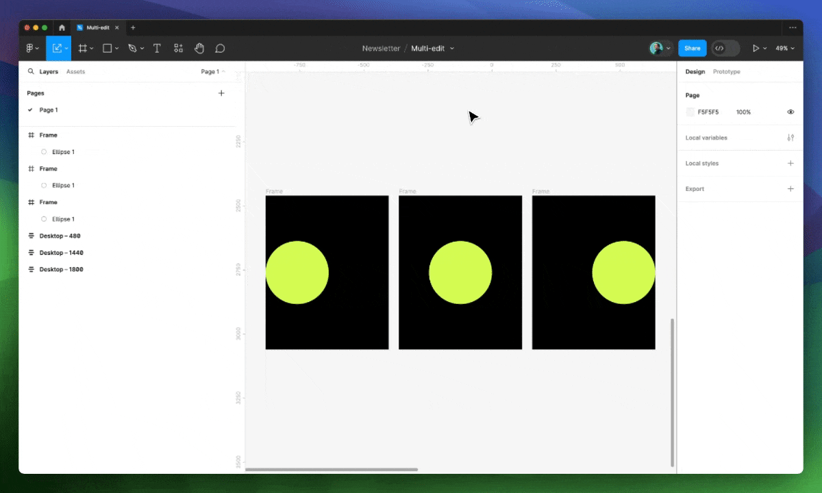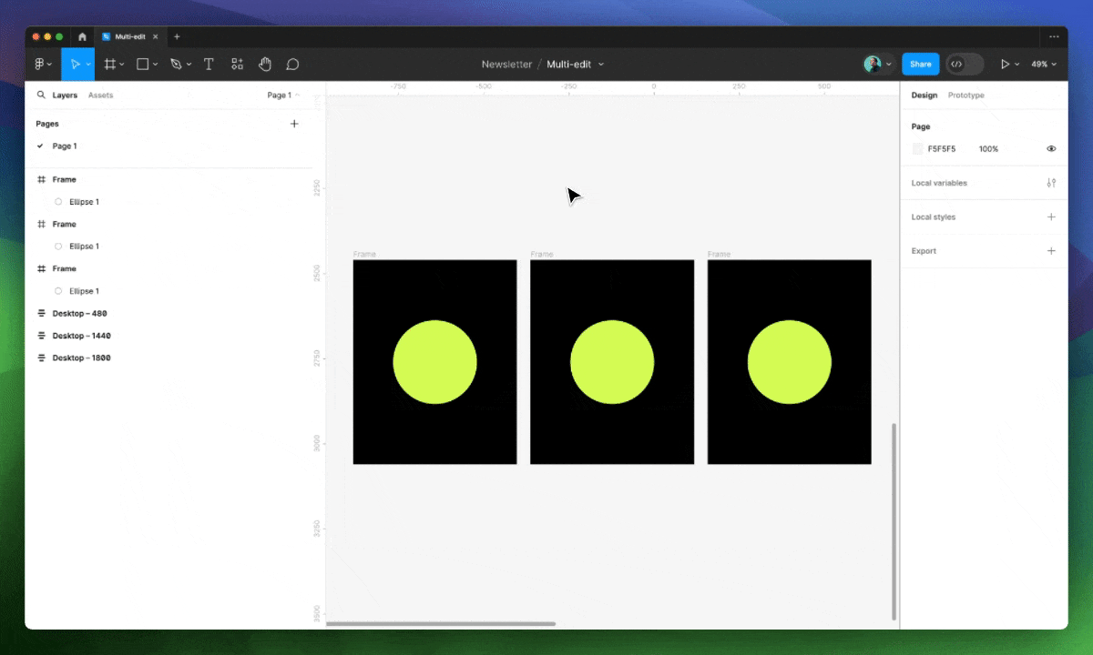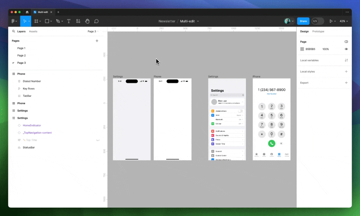 Что ж, Figma снова сделала это! Команда представила новую функцию — фактически, совершенно новый способ работы с элементами — чтобы помочь решить проблему, о которой некоторые даже не догадывались🙃. Функция называется Мультиредактирование (или Multi-edit), и хотя я пользуюсь ею совсем недолго, мне кажется, она была здесь всегда, что еще раз подчеркивает талант команды Figma.