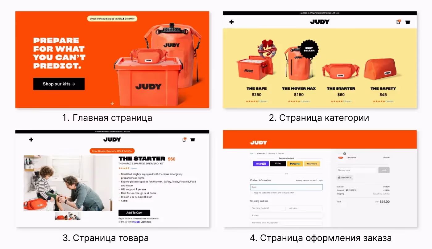 Практически все десктопные сайты электронной коммерции используют схожую последовательность страниц, чтобы провести пользователей через процесс совершения покупки.
