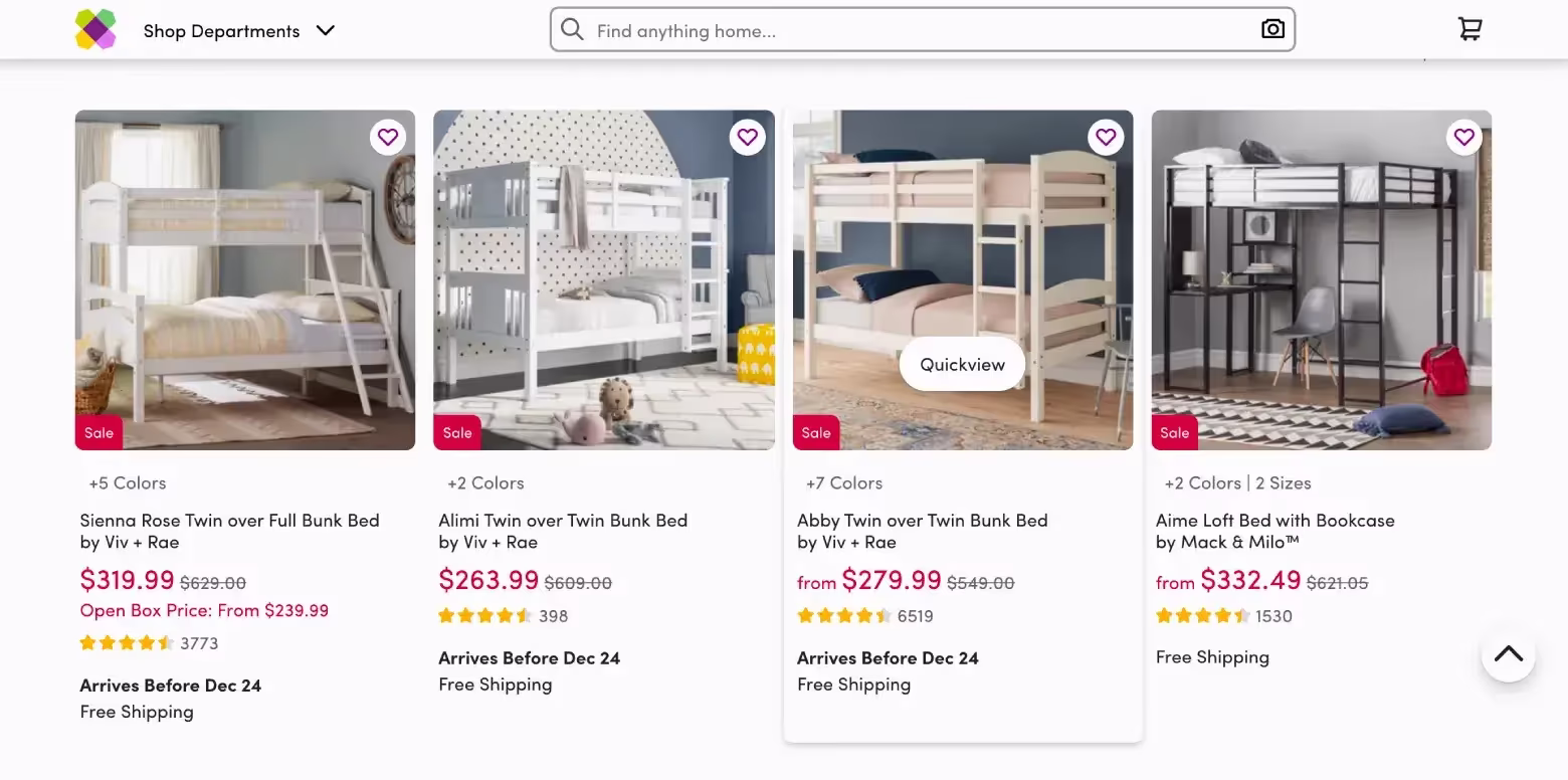 Экраны компьютеров идеально подходят для размещения сеток товаров. Сетки соответствуют F-паттерну сканирования и позволяют покупателям быстро сравнивать несколько опций. Они особенно эффективны для товаров, которые легко показать на фото. Чтобы максимально использовать преимущества сеток, старайтесь, чтобы в одном ряду располагалось от двух до четырех объектов. Когда их пять и более, сканировать сетку становится намного сложнее.