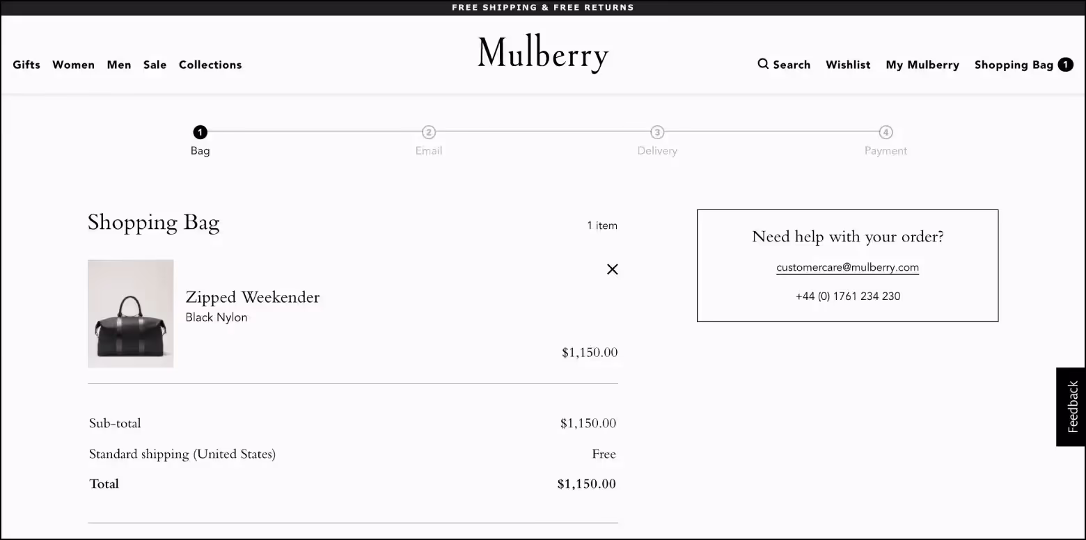 Кроме того, позаботьтесь о поддержке клиентов — добавьте на страницу чат-бота, правила возврата товаров, ссылки на часто задаваемые вопросы и контакты службы поддержки. Возможно, эти ресурсы не пригодятся покупателям при оформлении заказа, но они будут чувствовать себя спокойно, зная об их существовании.