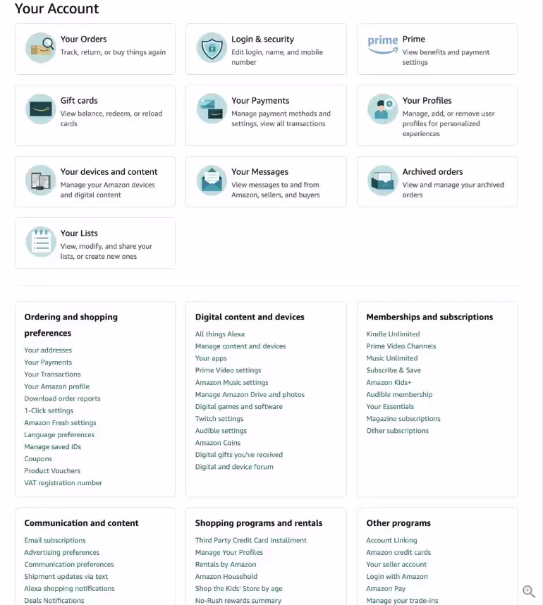 Люди, как правило, нечасто обращаются к настройкам своего аккаунта — они заходят на эту страницу только при наличии конкретной цели (например, изменить адрес для доставки, обновить карту для оплаты, проверить заказ).