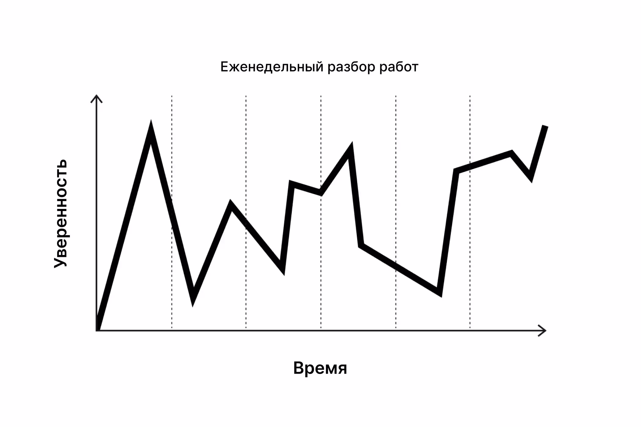 В идеале работа плавно переходит от одного этапа к другому. Мы проверяем ее в определенные моменты времени, и это помогает нам обретать все большую уверенность в выбранном направлении.