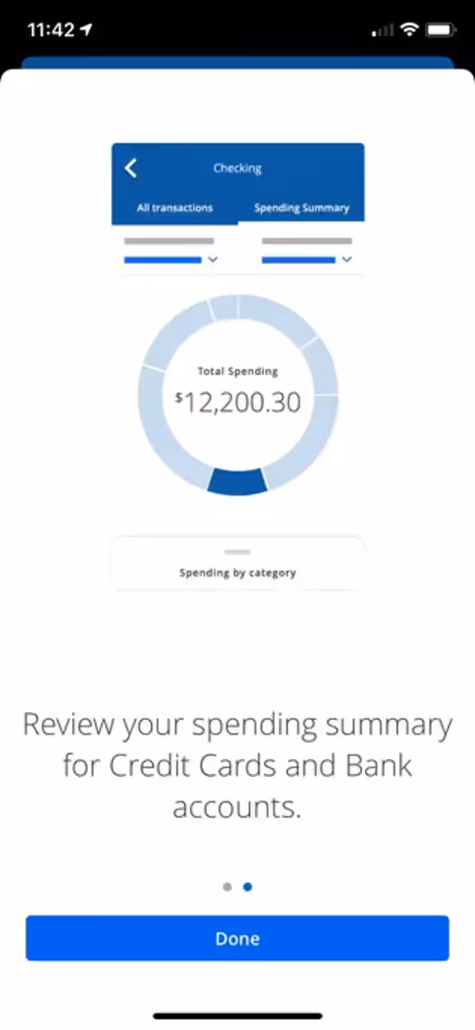 Хотя процесс онбординга не так полезен и эффективен для пользователей при первом запуске приложения, он будет очень актуален при внедрении новых функций. Например, в приложении Chase использовались карточки для представления новой функции бюджетирования.