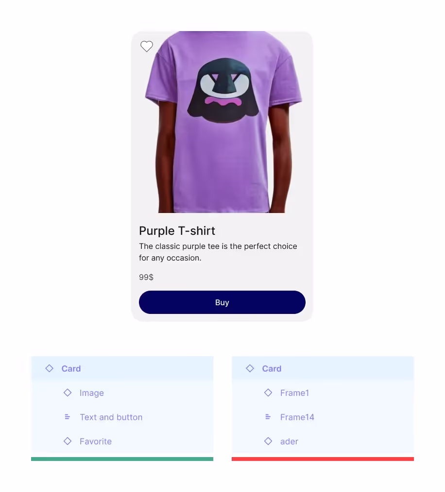 Один из случаев, когда названия слоев играют важную роль, — замена экземпляров компонентов. Если в экземплярах, которые мы заменяем, названия слоев не совпадают, некоторые их параметры могут измениться автоматически. Допустим, у вас есть кнопка с иконкой внутри, вы меняете цвет иконки, а затем и саму иконку. Если названия слоев внутри иконок различаются, их цвет сбросится до значения по умолчанию. Подробнее об этом вы можете прочитать здесь.