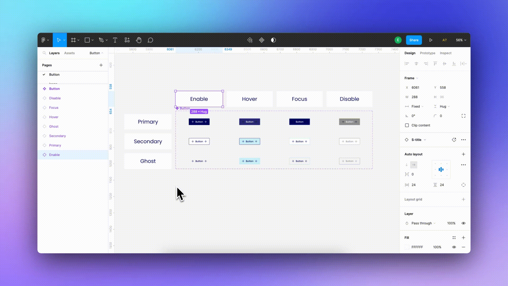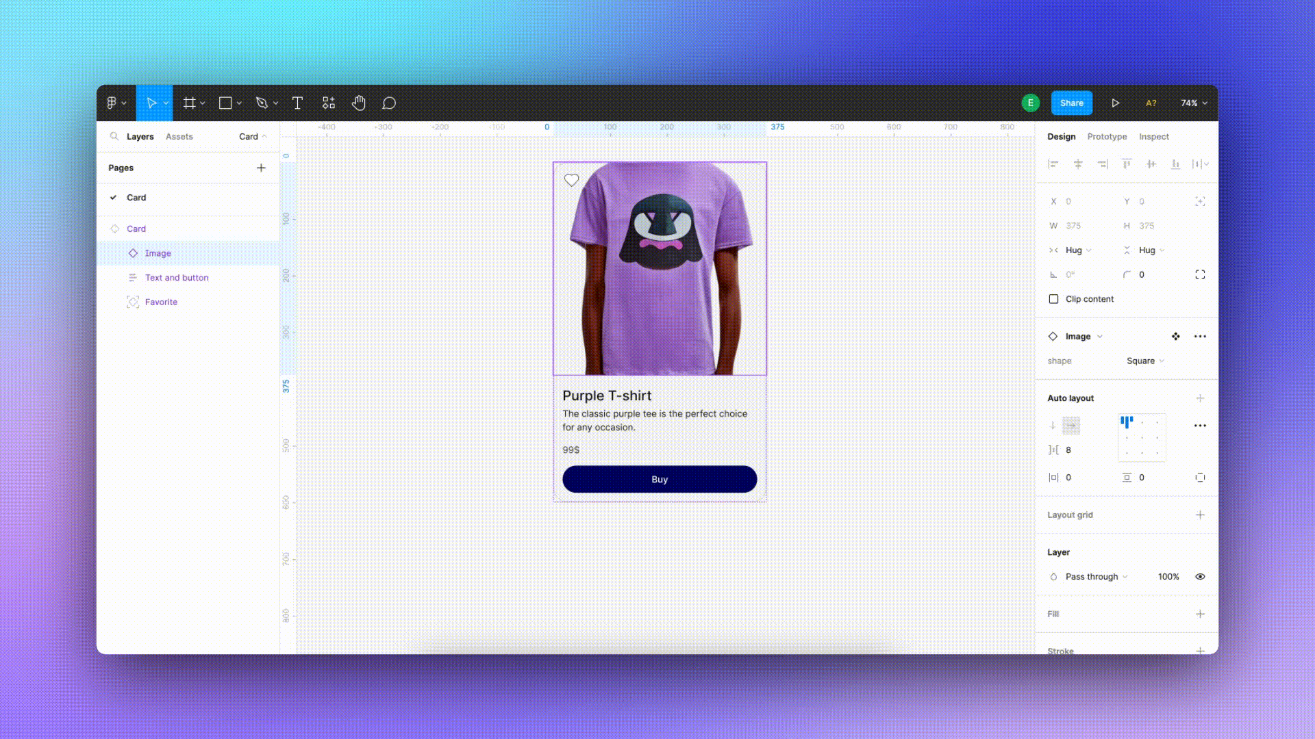 Когда мы выбираем слой, Figma выделяет всё, что находится внутри него