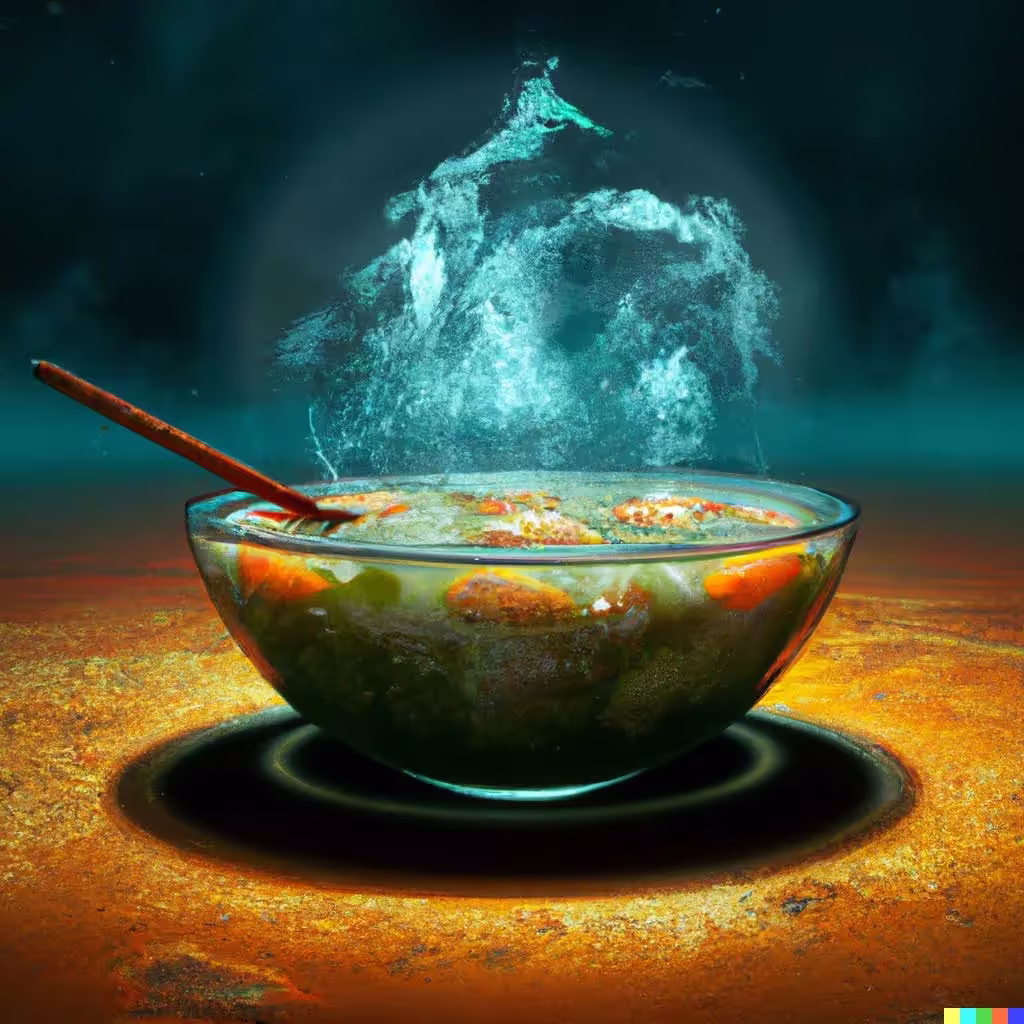 Результат DALL-E 2 по запросу «суп как портал в другое измерение»