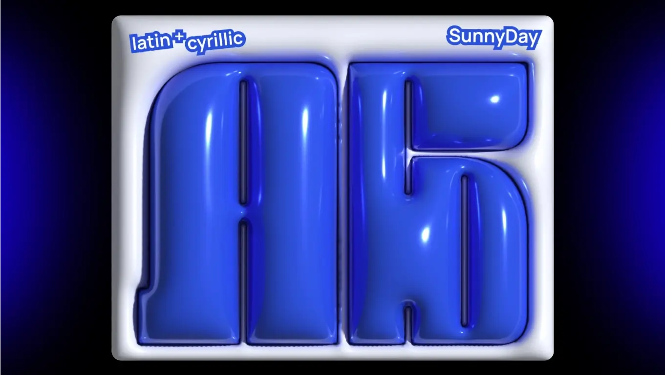 Экспериментальный шрифт с ярким летним характером, построенный на игре высокой контрастности и выразительных форм. Его пластика словно отражает солнечные блики: крупные очертания букв, легкие преувеличения и дружелюбный ритм делают шрифт визуально заметным и эмоционально теплым.