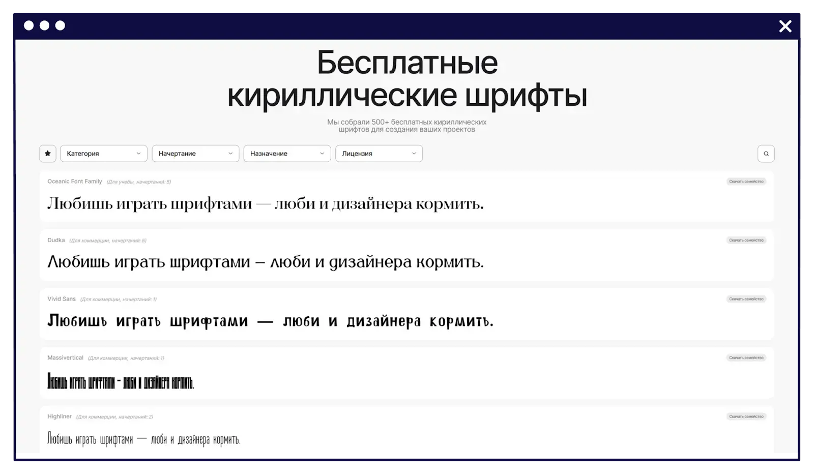 В ее коллекции — шрифты для тех, кто ищет не просто инструмент для текста, а полноценный художественный прием. Каждый из них наполнен настроением, историей и стилистическим акцентом, которые могут преобразить любой проект. И самое важное: эту кириллицу вы можете использовать совершенно бесплатно для любых ваших проектов.